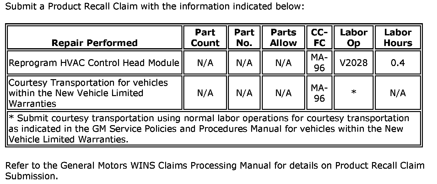 Dealers are to reprogram the HVAC control head module.