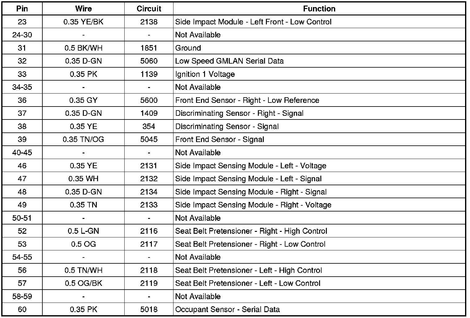 Inflatable Restraint Sensing and Diagnostic Module (SDM)