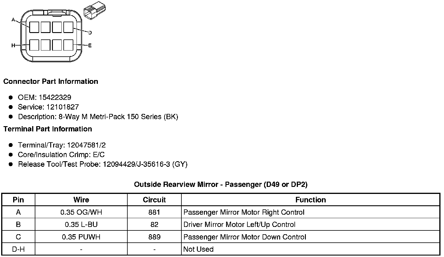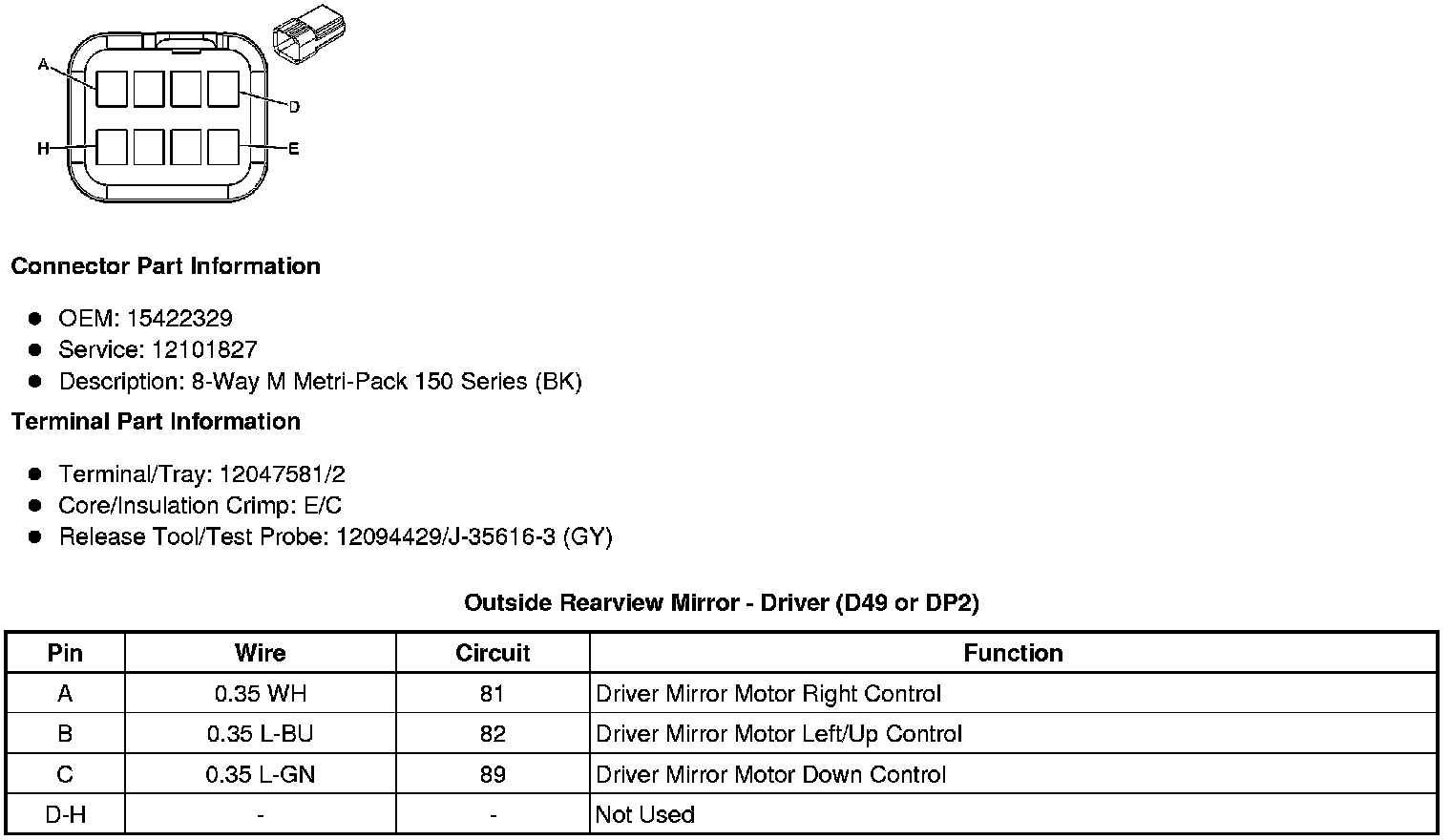 Outside Rearview Mirror - Driver (D49 or DP2)