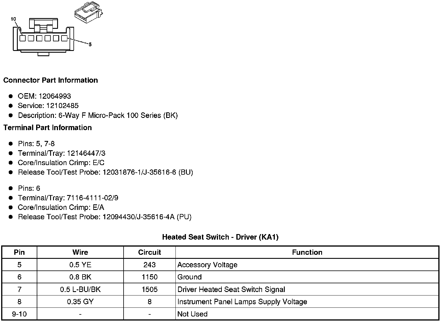 Heated Seat Switch - Driver (KA1)