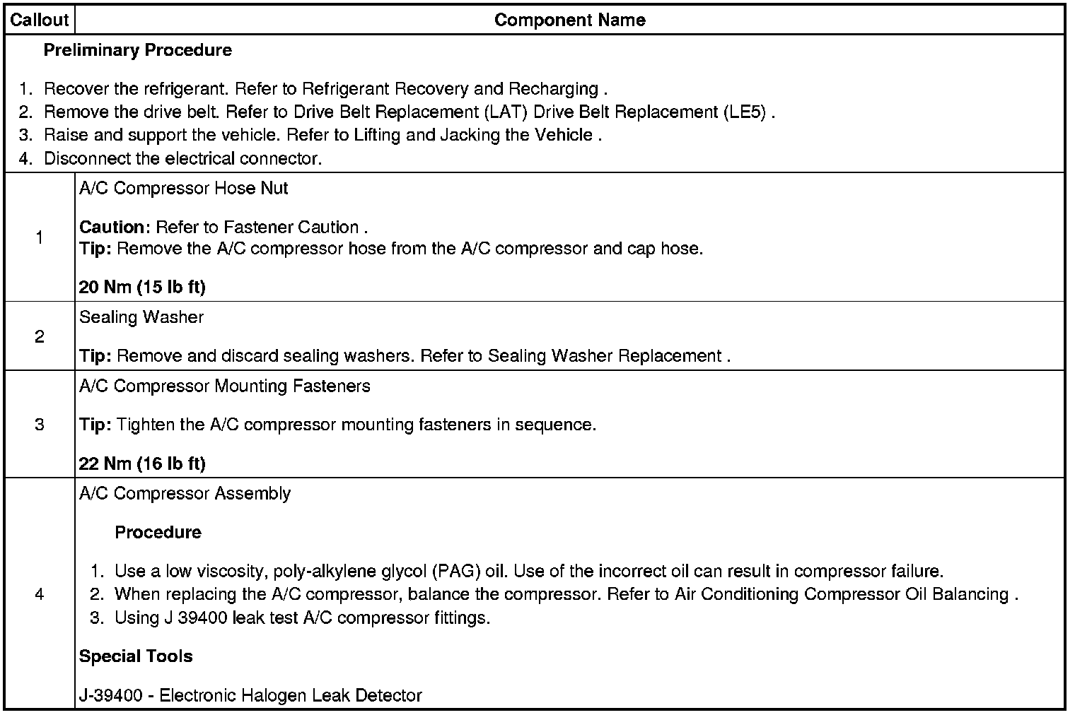 Air Conditioning Compressor Replacement (LE5) (2.4L Non Hybrid)