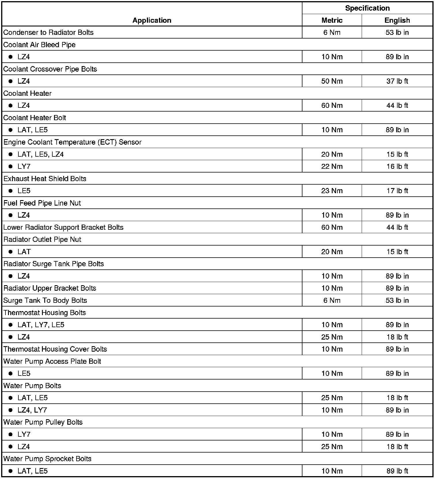 Fastener Tightening Specifications