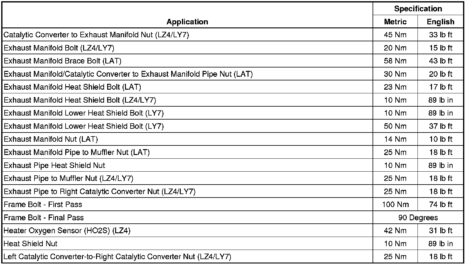 Fastener Tightening Specifications