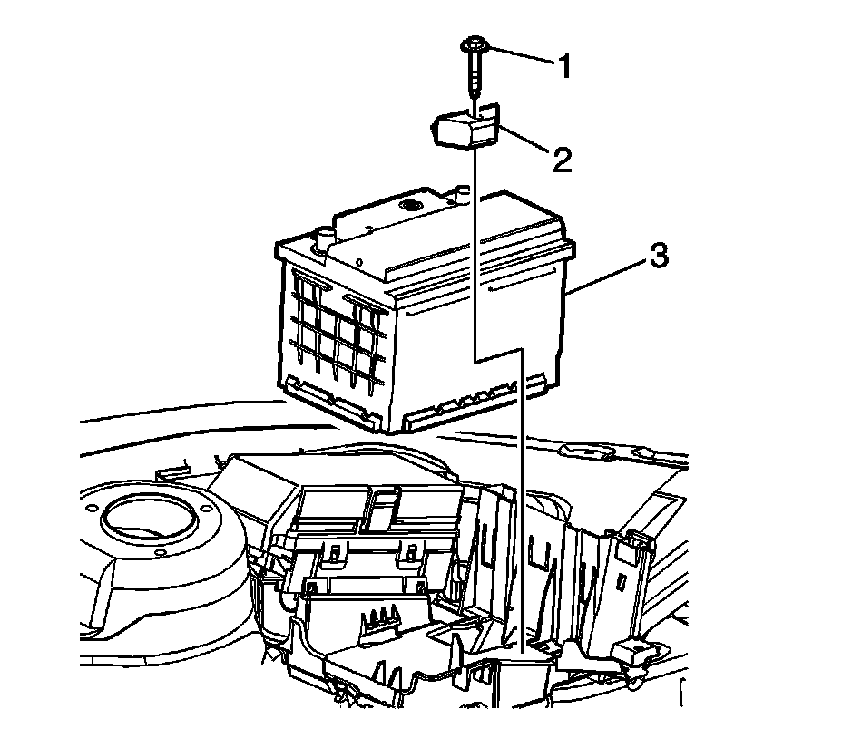 1. Position the battery in the battery tray (3).