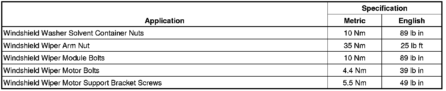 Wiper and Washer Systems: Specifications