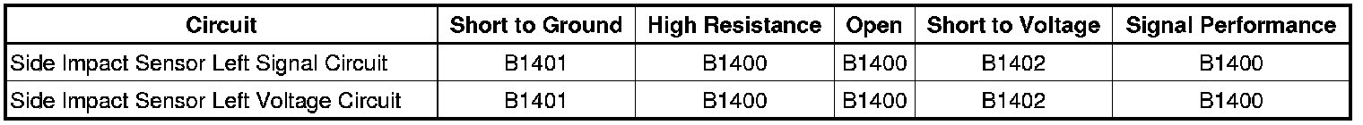 - LF Side Impact Sensor (SIS) Short to Ground