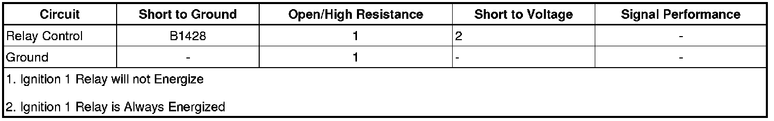 The instrument panel cluster (IPC) controls the ignition 1 relay through the relay coil control circuit by applying voltage to the circuit. The ignition 1 relay is energized when the ignition switch is in ON or START, or when a remote start is requested.