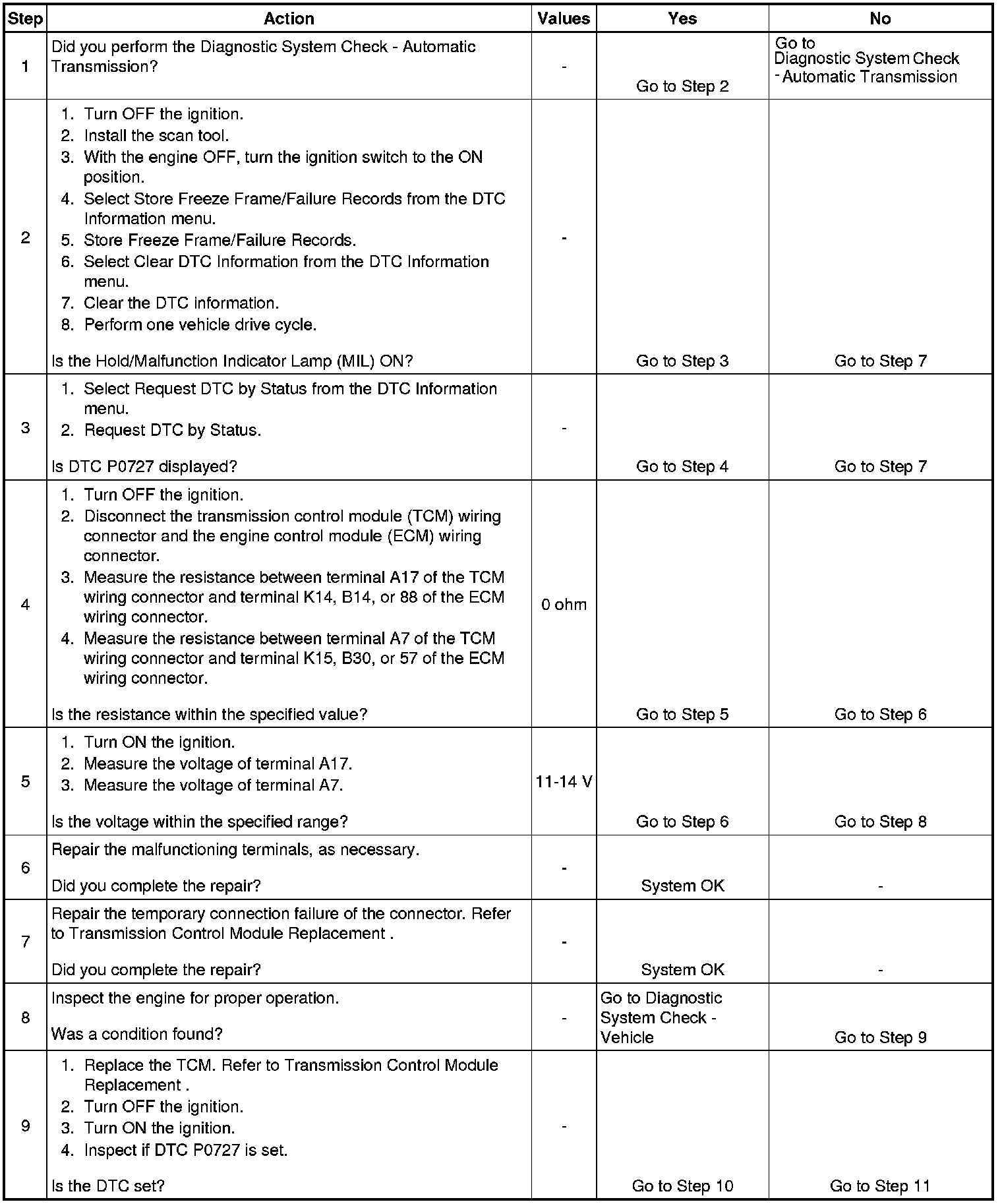 DTC P0727
