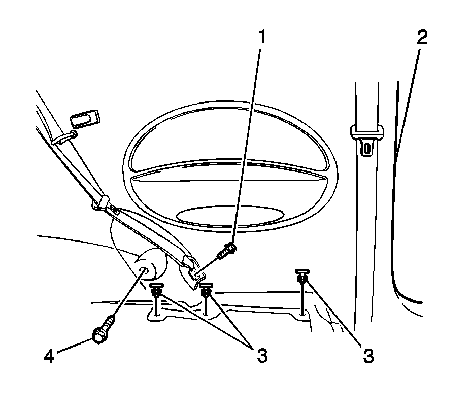 5. Remove the seat belt lower anchor bolt (1).