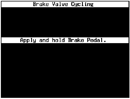 11. The "Apply and Hold Brake Pedal" message will appear from the Brake Valve Cycling screen.