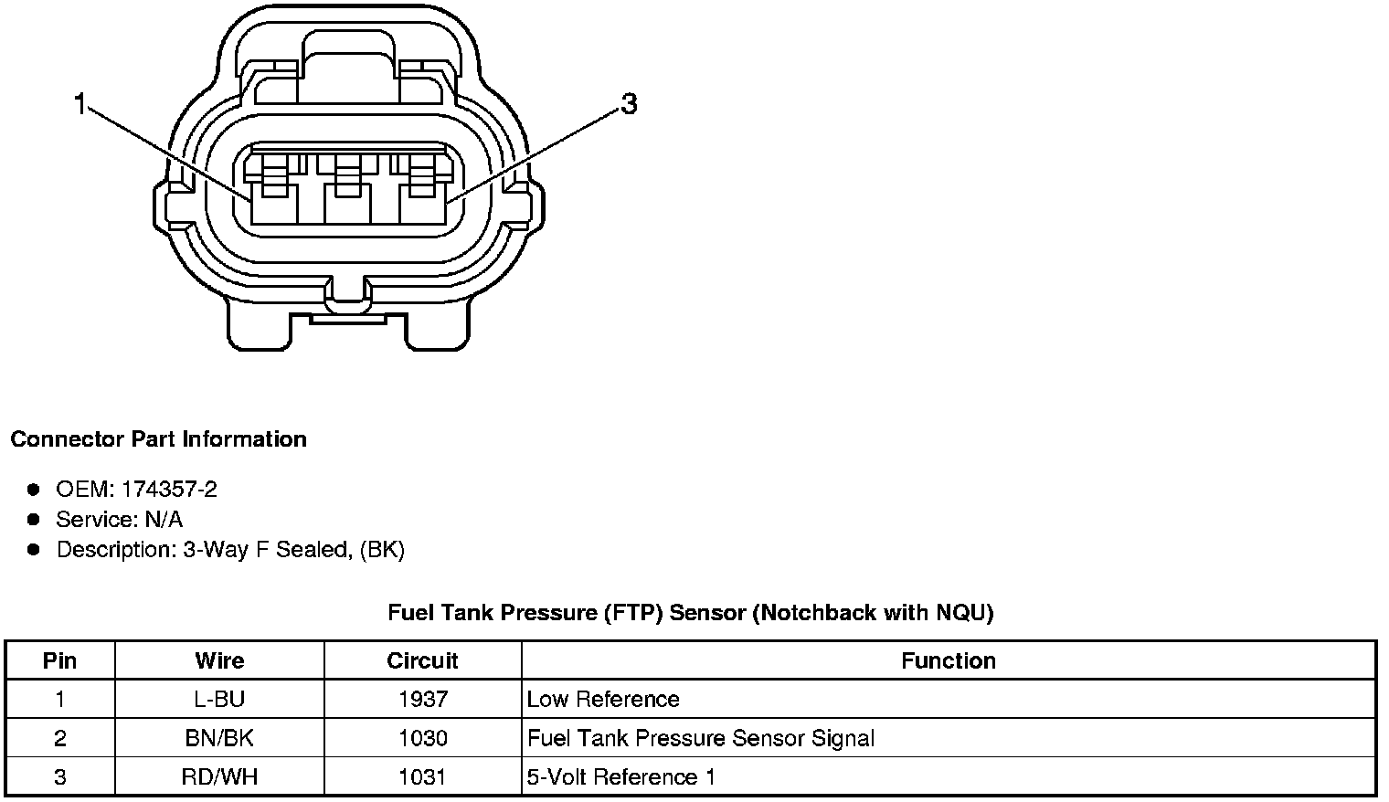 Fuel Tank Pressure (FTP) Sensor (Notchback with NQU)