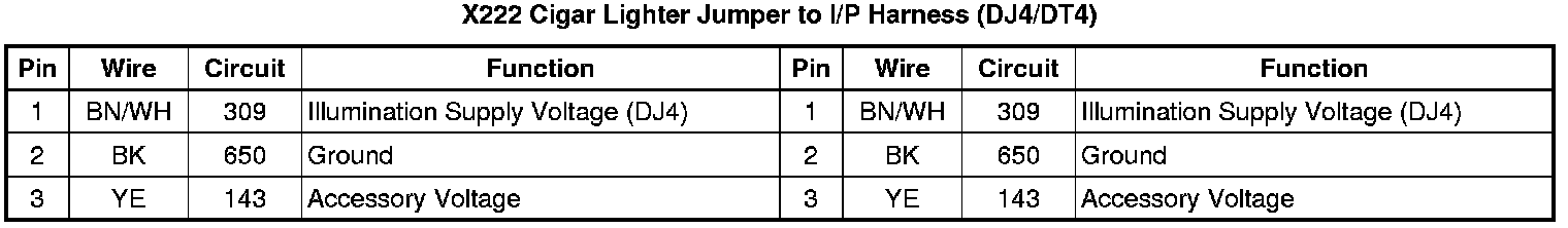 X222 Cigar Lighter Jumper to I/P Harness (DJ4/DT4)