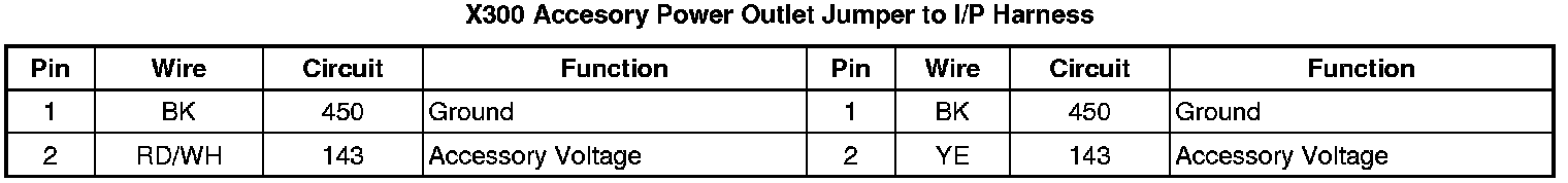 X300 Accessory Power Outlet Jumper to I/P Harness