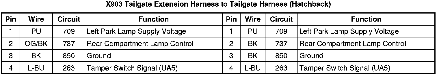 X903 Tailgate Extension Harness to Tailgate Harness (Hatchback)