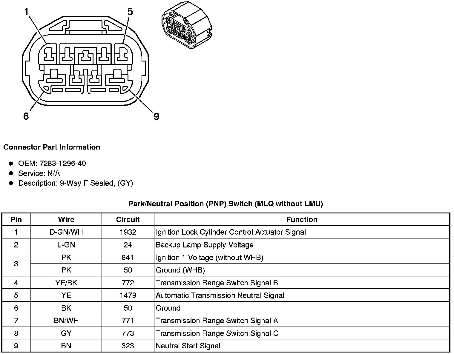 Park/Neutral Position (PNP) Switch (LMU with MLQ)