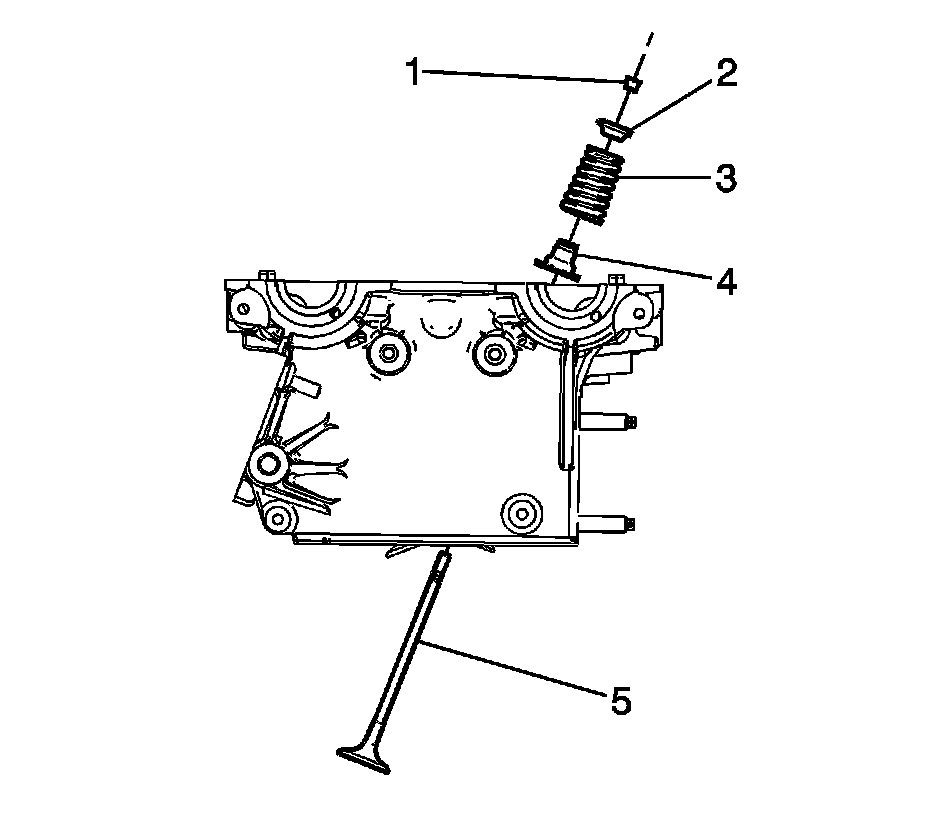 8. Remove the valves (5), springs (3), retainers (2), and seals (4).
