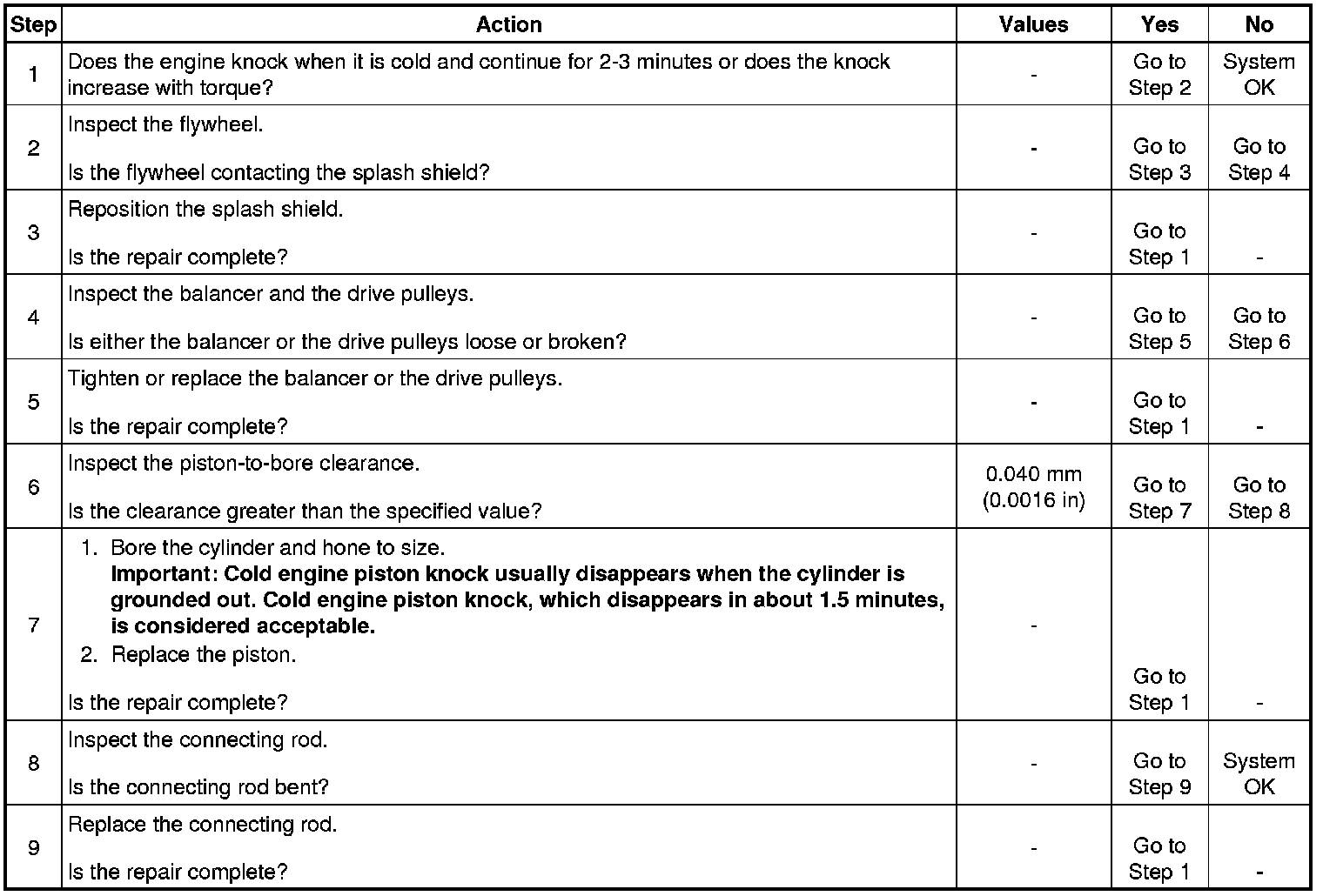 Engine Knocks Cold and Continues for Two-Three Minutes and/or Knock Increases with Engine Torque