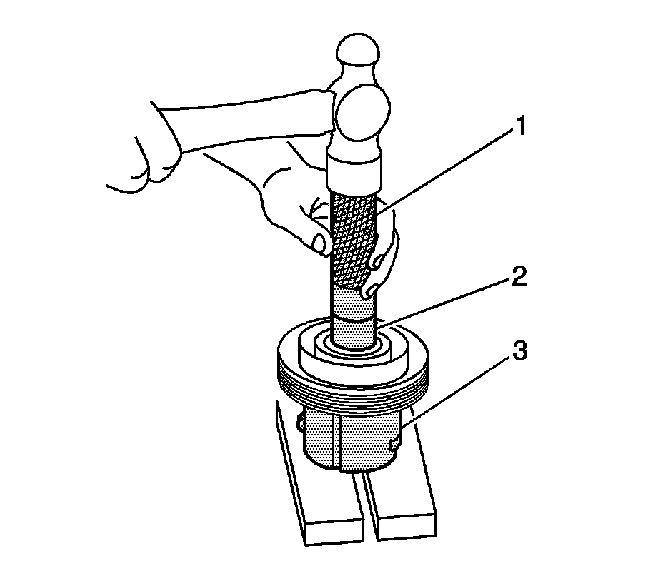 Caution: The rotor hub must be properly supported to prevent damage to the pulley rotor during bearing removal.