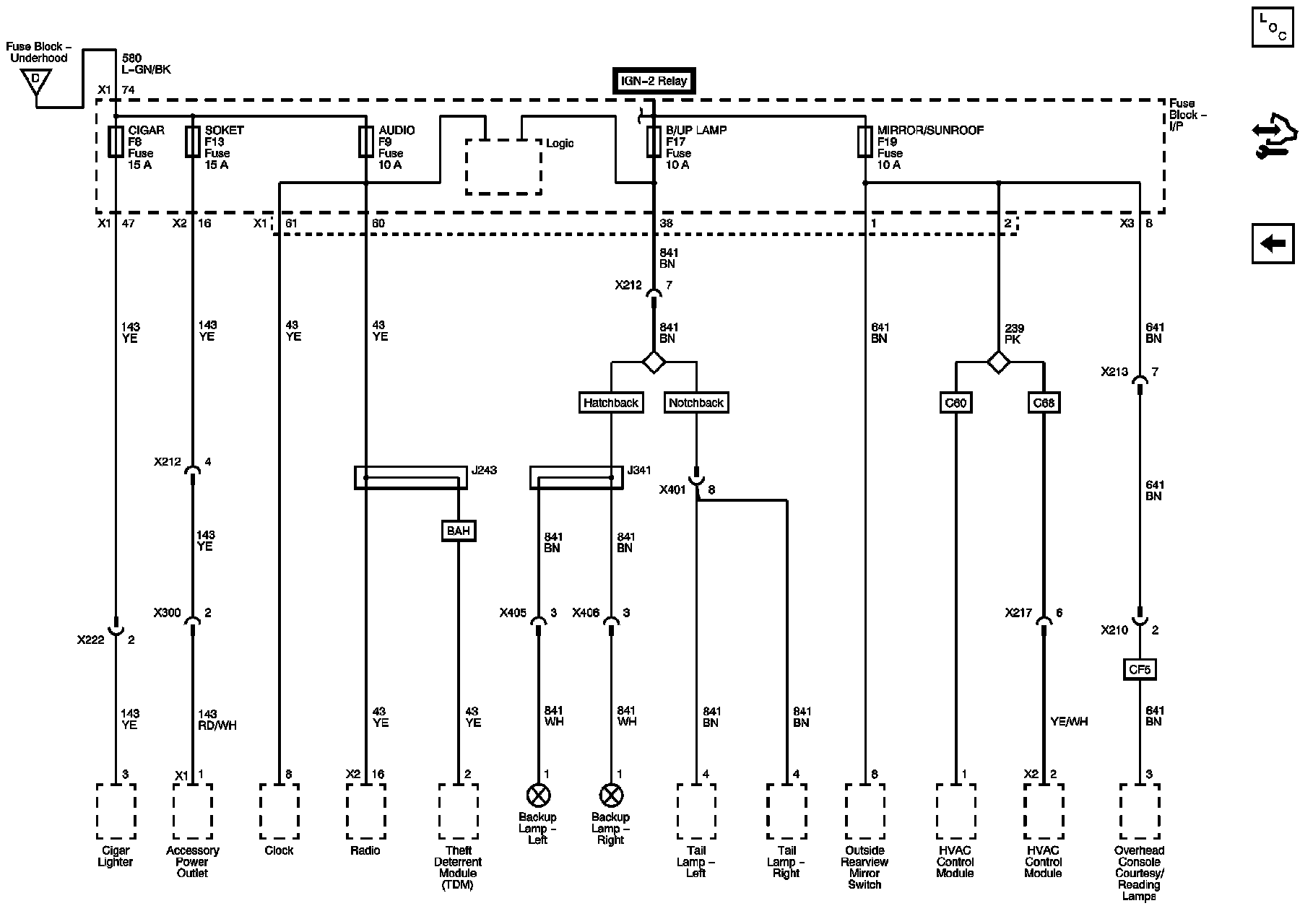 - I/P - CIGAR, SOCKET, AUDIO, B/UP LAMP, MIRROR, SUNROOF Fuses