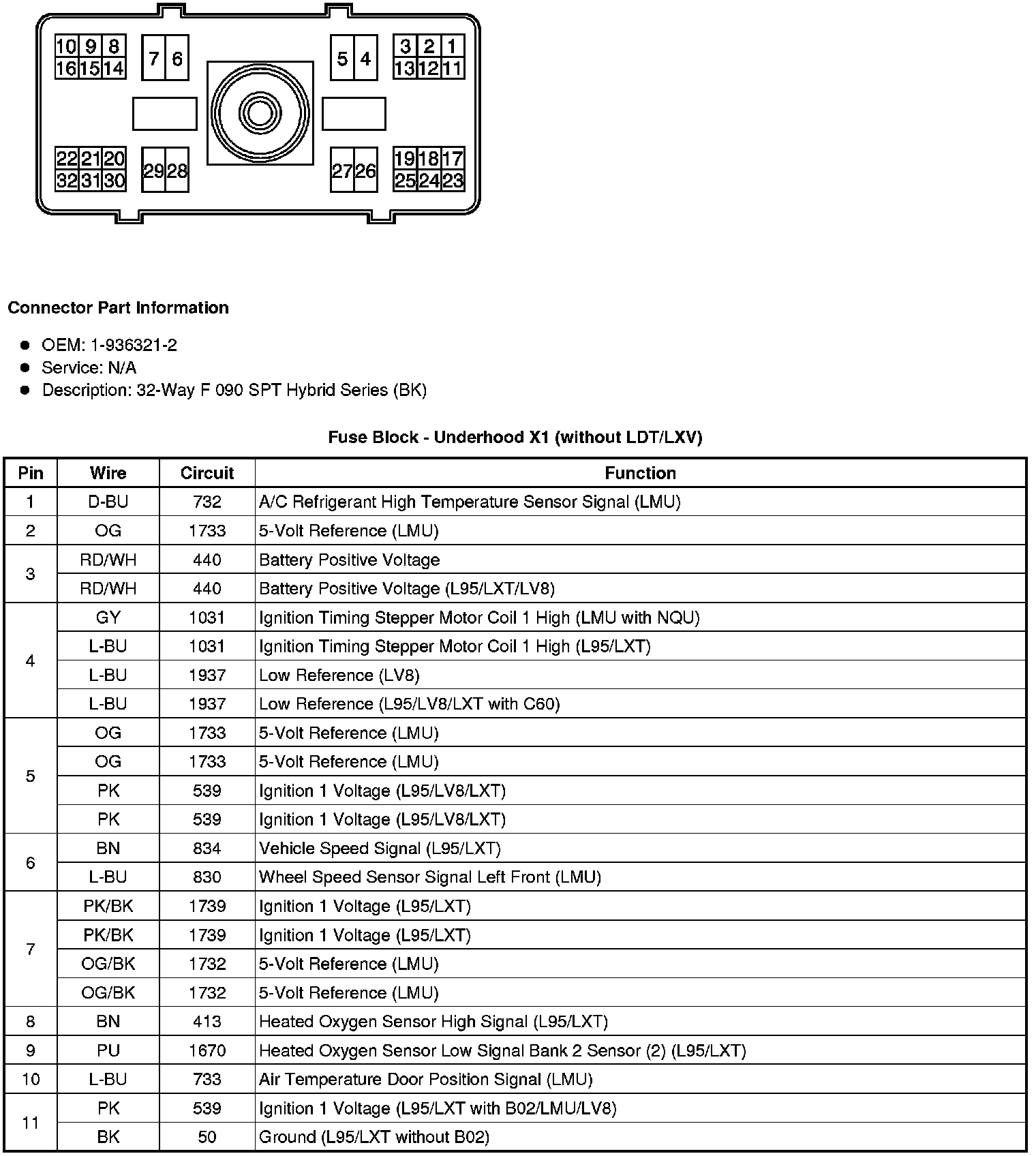 Fuse Block - Underhood X1 (without LDT/LXV)
