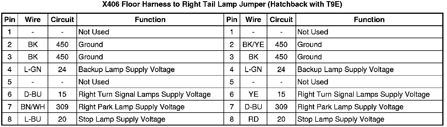X406 Floor Harness to Right Tail Lamp Jumper (Hatchback with T9E)