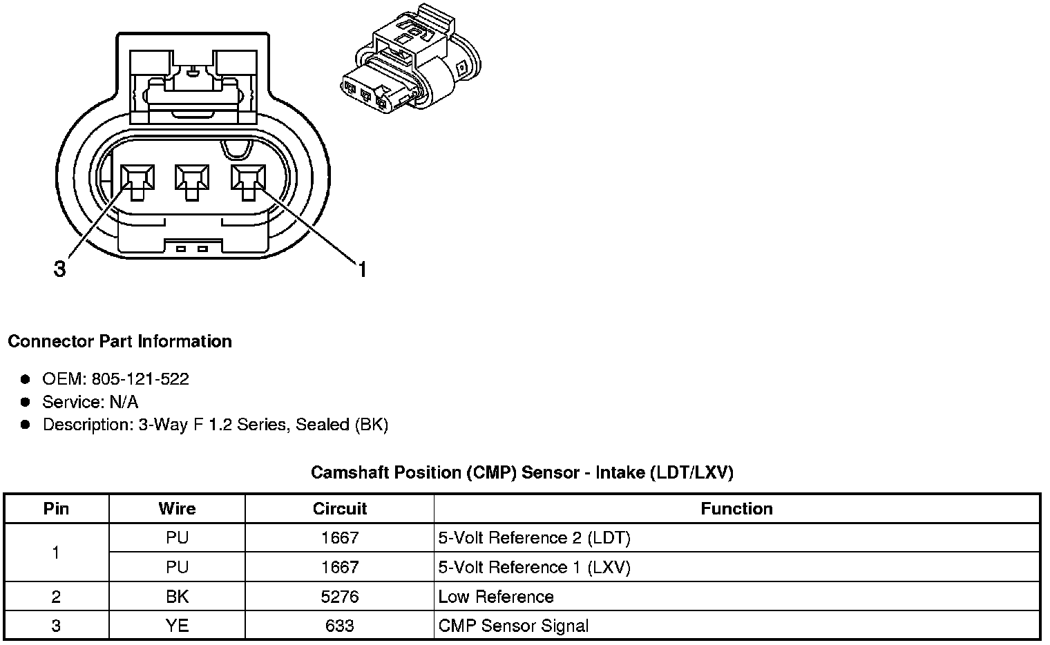 Camshaft Position (CMP) Sensor - Intake (LDT/LXV)