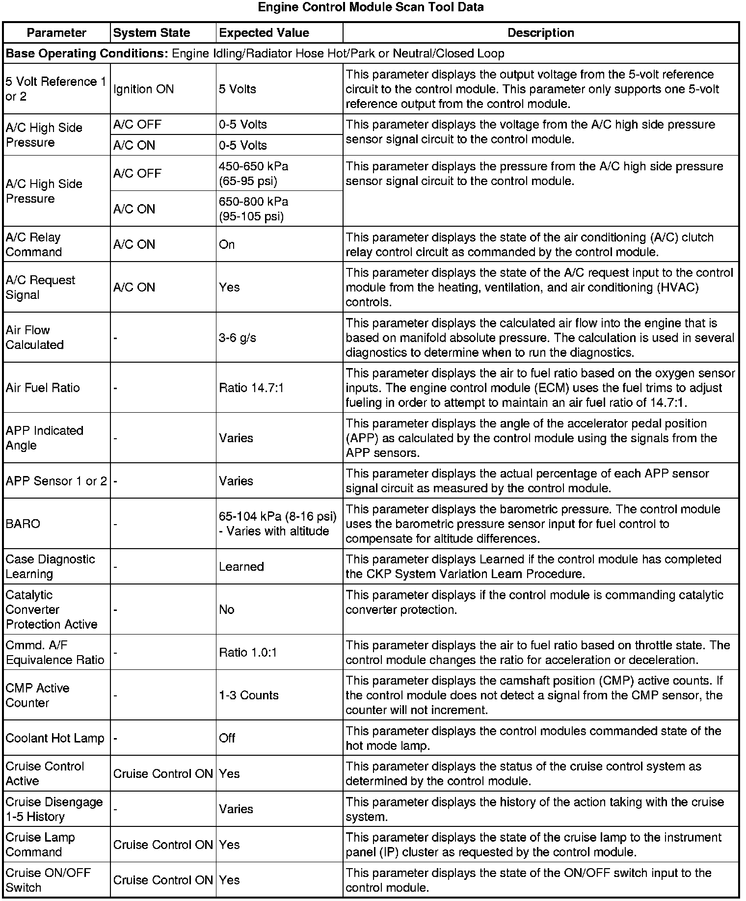The Engine Control Module Scan Tool Data List contains all engine-related parameters that are available on the scan tool. This is a master list arranged in alphabetical order and not all the parameters listed are in every engine platform.