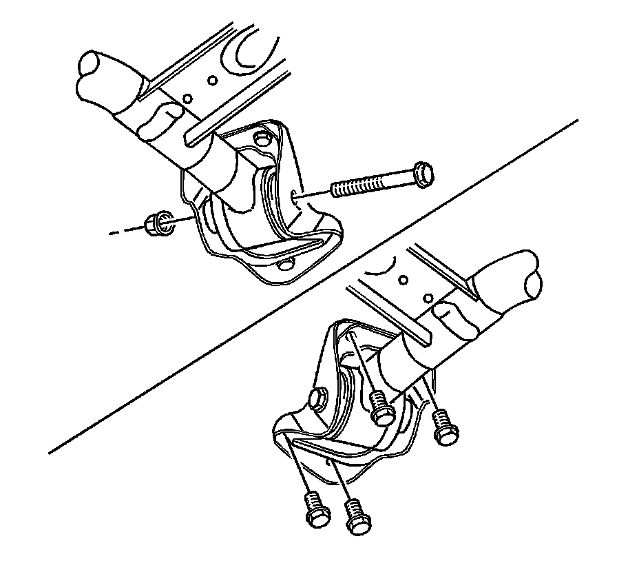 6. Apply blue medium strength threadlocker, GM P/N 12345382, or equivalent, to the right axle mounting bracket bolts.