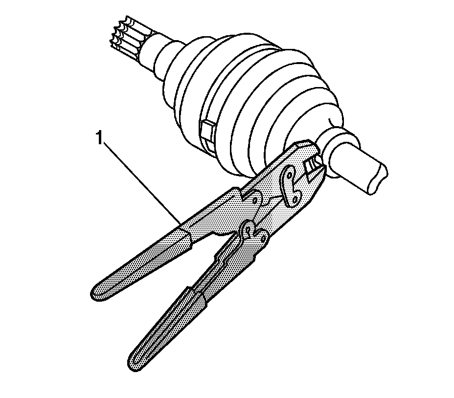 8. Crimp the new small retaining clamp using J 35566 (1).