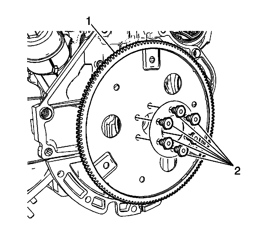 Tighten the flexible plate bolts (2) to 35 Nm +30° +15° (25.8 lb ft +30° +15°).