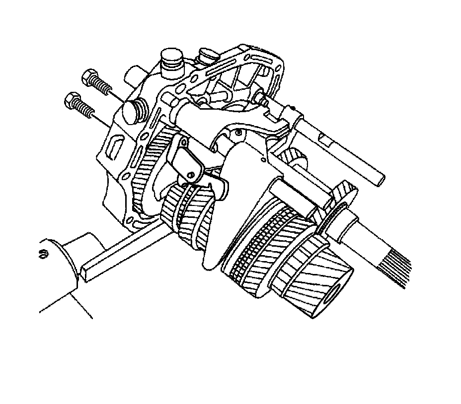 27. Install the 5th gear fork bolts and tighten to 22 Nm (16 lb ft).