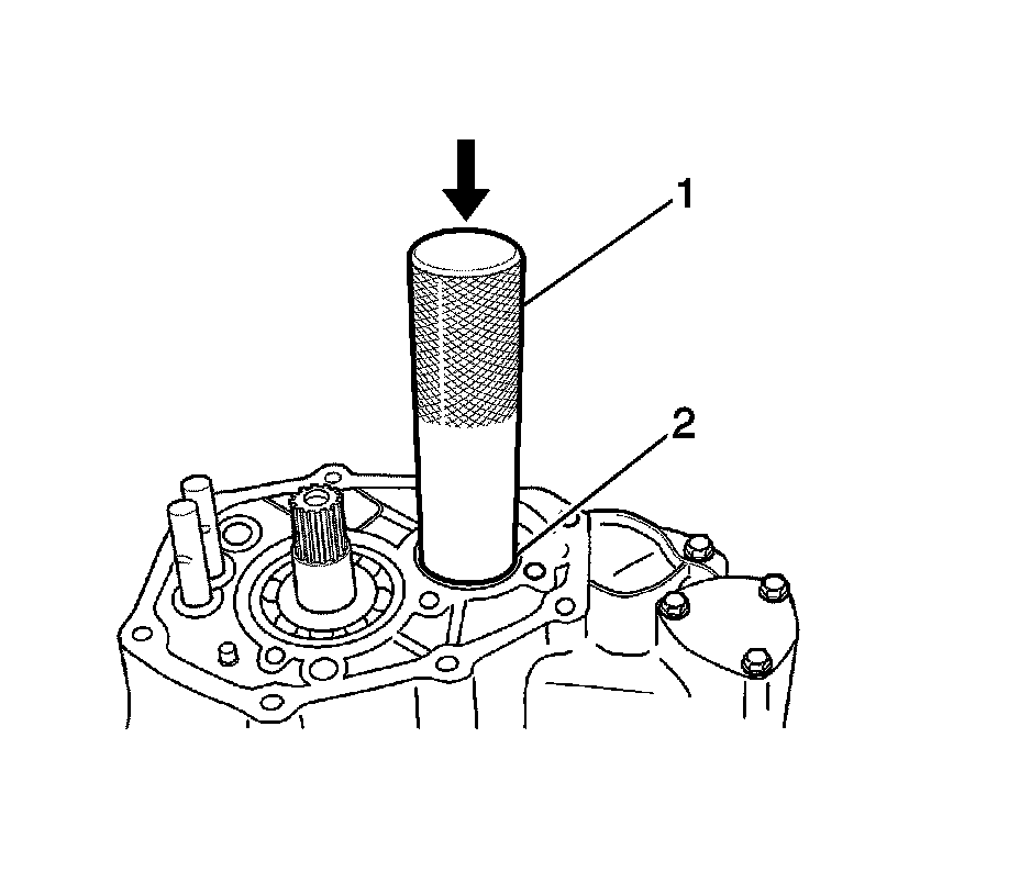 33. Measure the clearance between the transaxle case surface (3) and the bearing outer race (2) using a straight ruler (1) and a gauge. Refer to Manual Transmission Specifications (Manual Transmission Specifications).