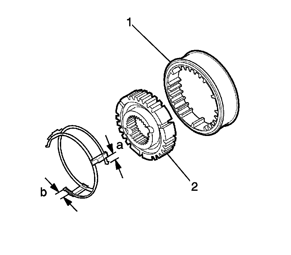 1. Install the third gear/synchronizer ring (1).