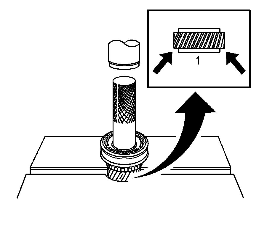 Important: Do not overpress when installing the gear, bearing and hub assembly. If overpressed, the gear teeth may be damaged.