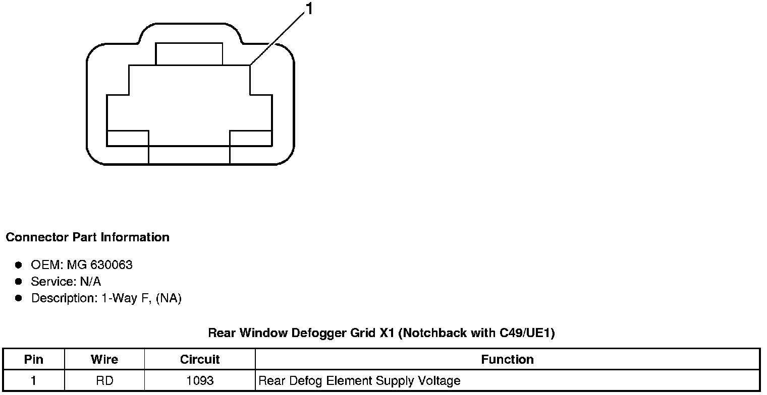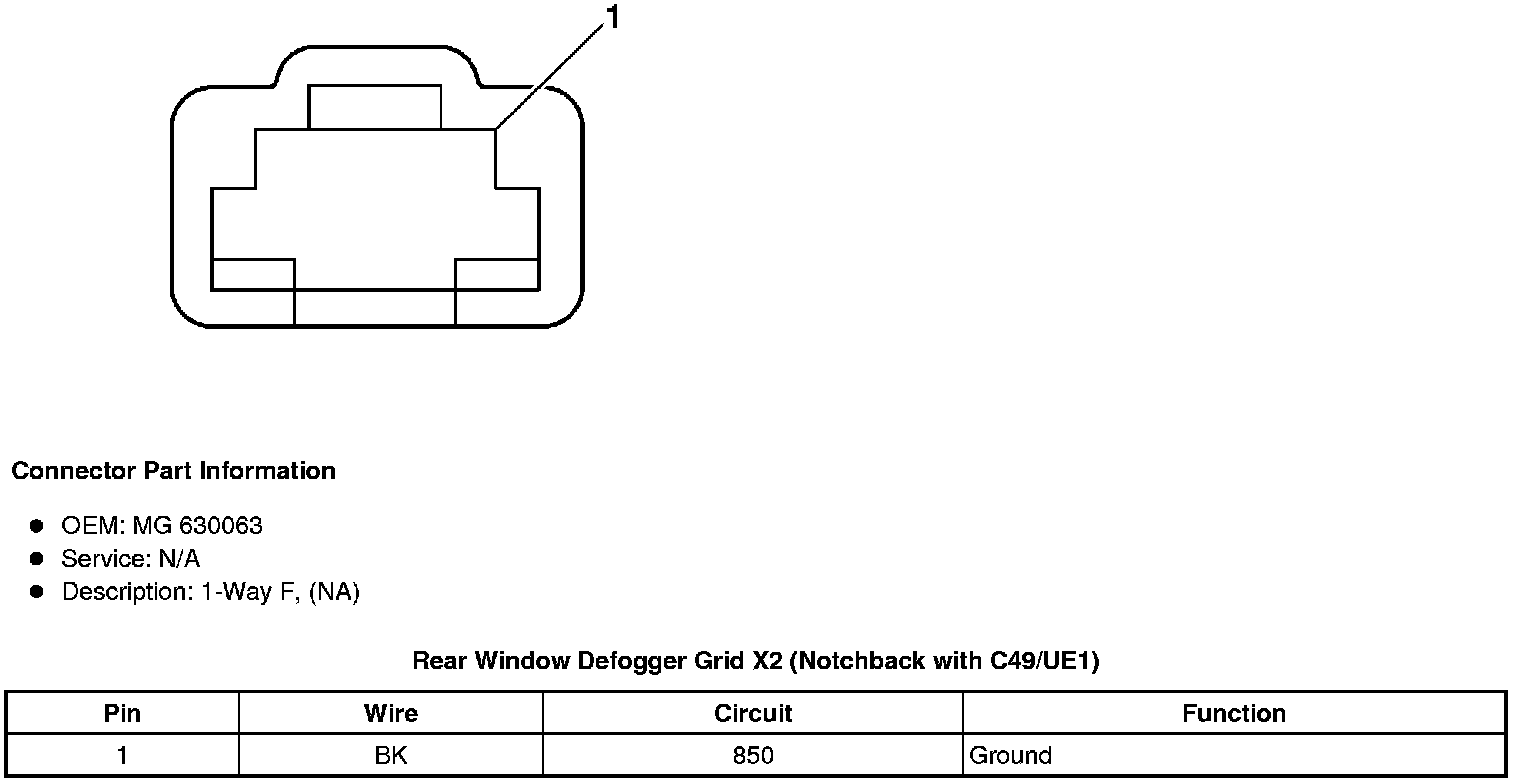 Rear Window Defogger Grid X1 (Notchback with C49/UE1)