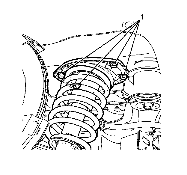 5.Remove the top strut assembly to body retaining bolts (1).