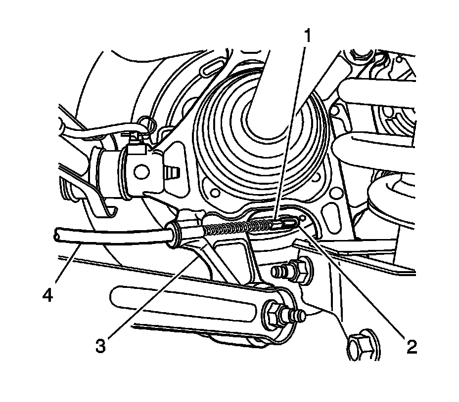 Note:Remove the outer cable (4) from the rear knuckle (3) by pulling the outer cable (4) forward.
