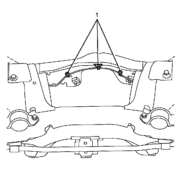 2.Connect the rear frame wiring harness to rear subframe center retaining clips (1).