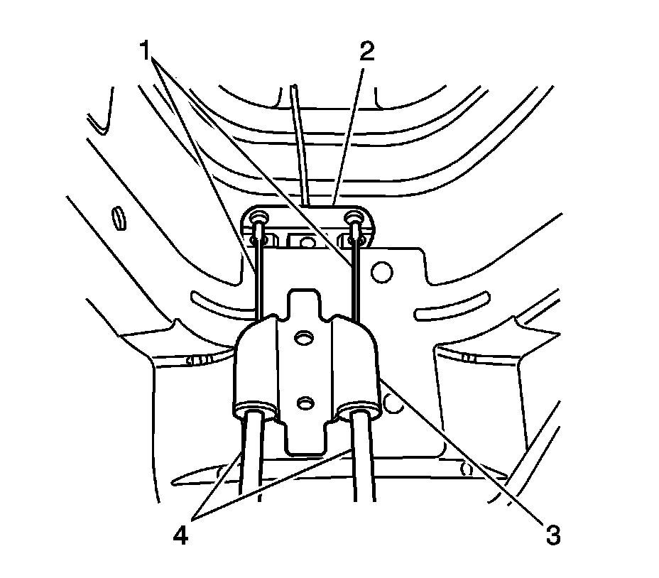 Make sure that the outer cables (4) are properly seated in the vehicle underbody bracket (3).