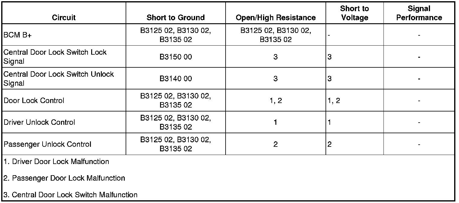 • If a door does not LOCK or UNLOCK, refer to Door Lock Malfunction.