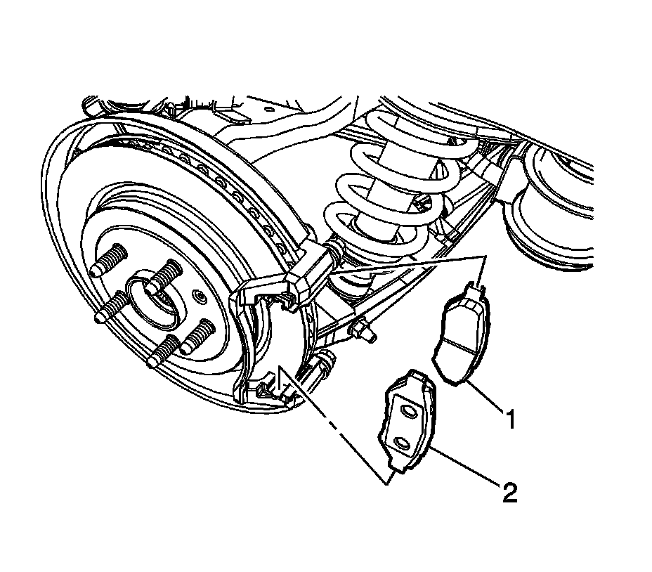 4. Install the outer disc brake pad (2).