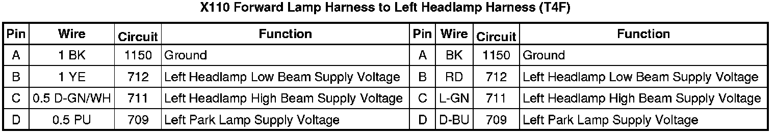 X110 Forward Lamp Harness to Left Headlamp Harness (T4F)