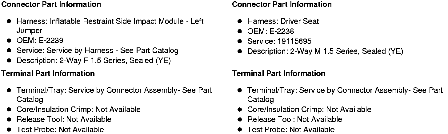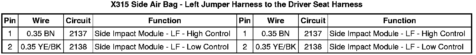X315 Side Air Bag - Left Jumper Harness to the Driver Seat Harness