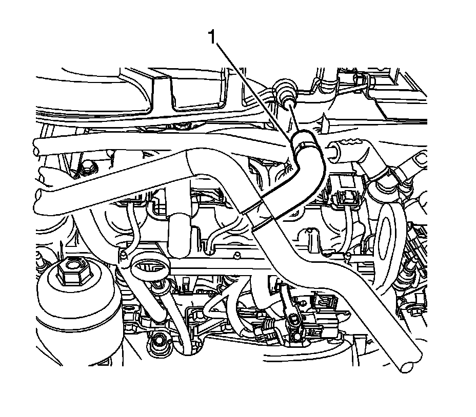 4. Disconnect the positive crankcase ventilation (PCV) hose (1) from the intake manifold.
