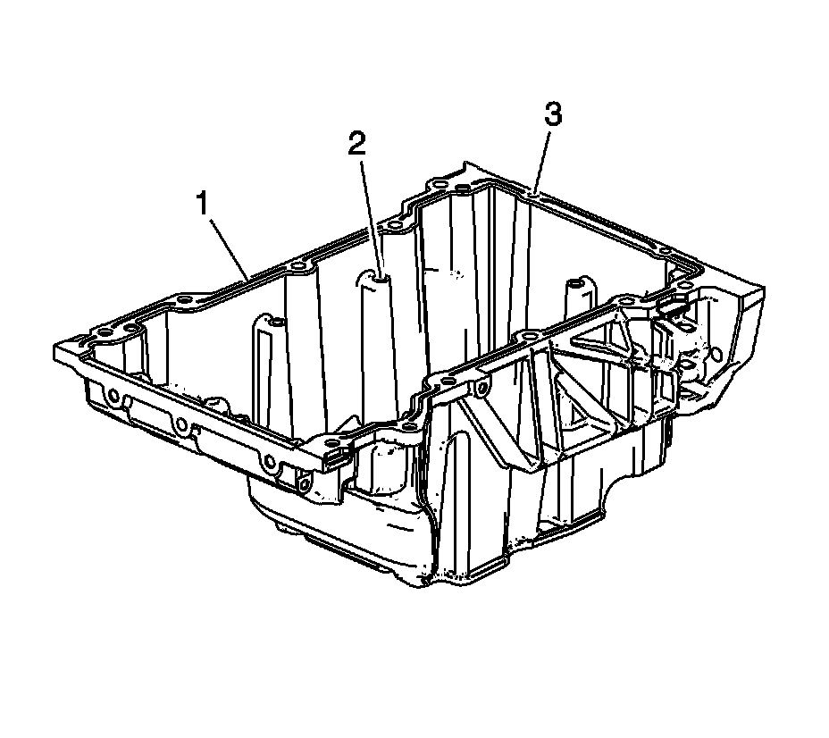 * Gouges or damage to the oil pan sealing surfaces (1)