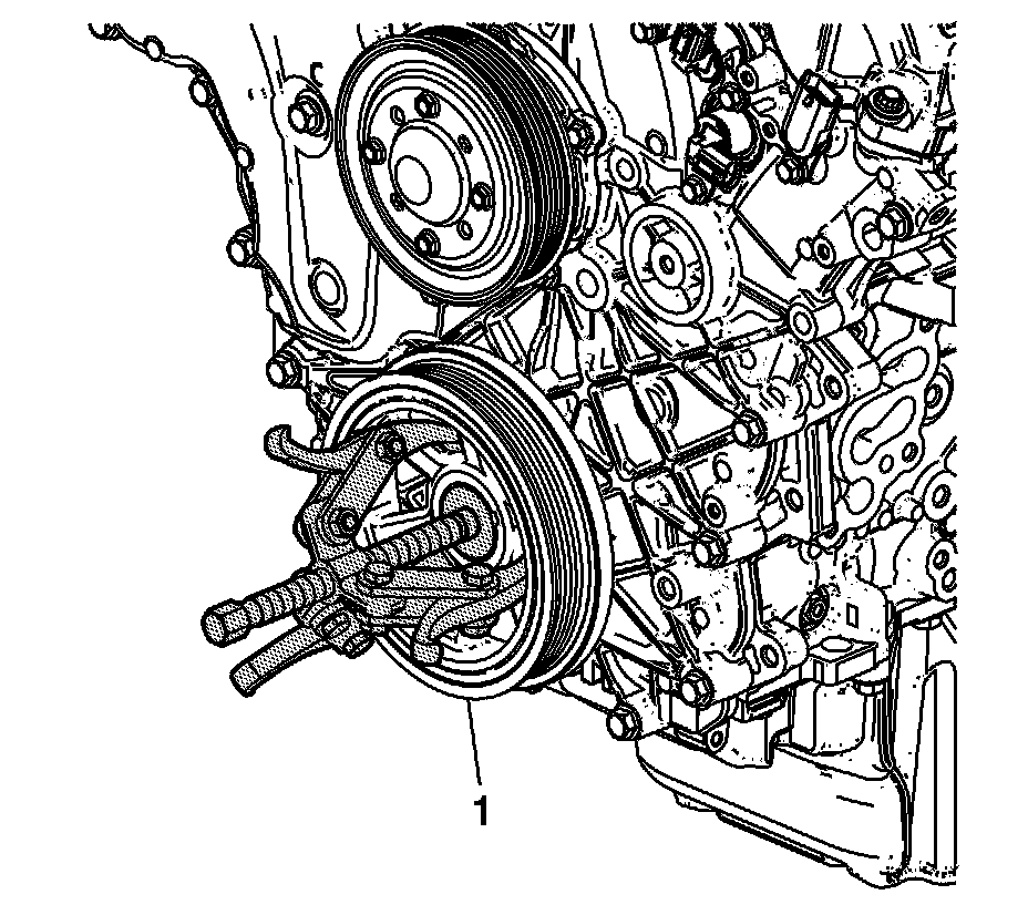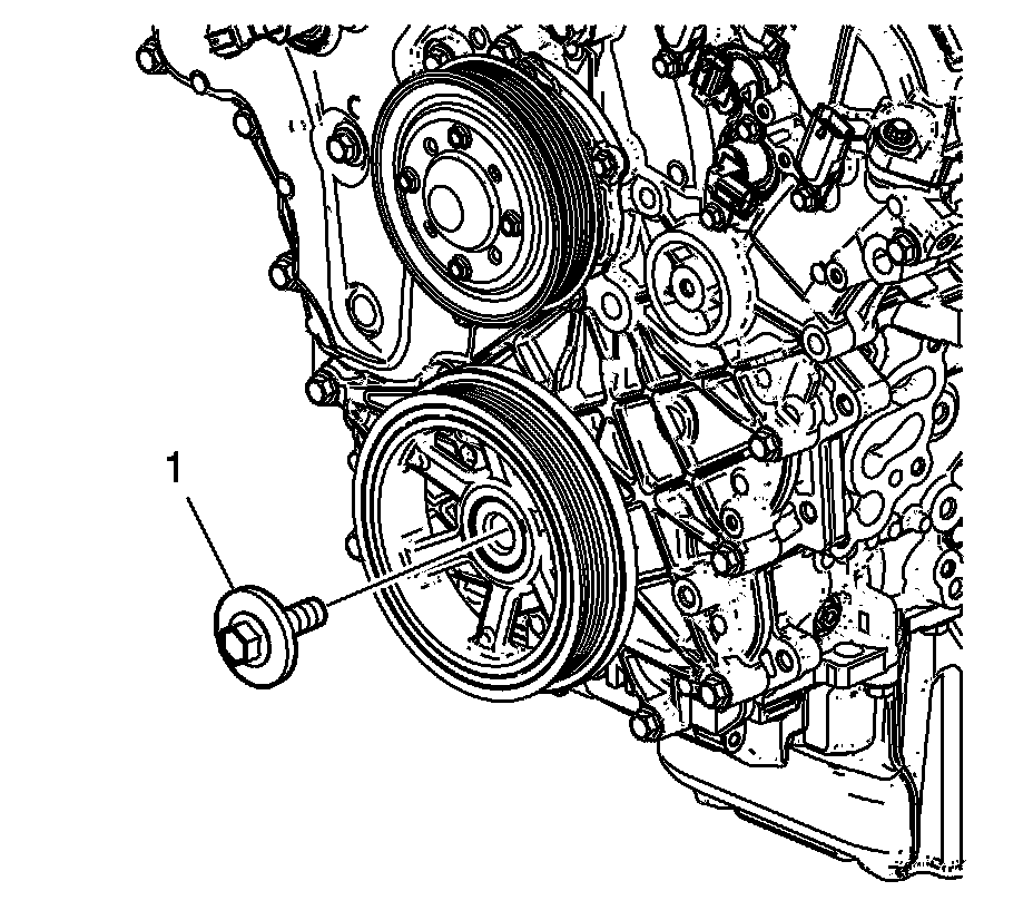 2. Remove and discard the crankshaft balancer bolt (1).