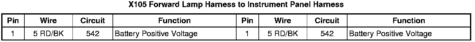 X105 Forward Lamp Harness to Instrument Panel Harness