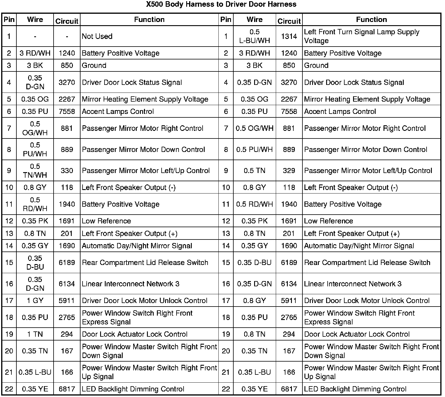 X500 Body Harness to Driver Door Harness