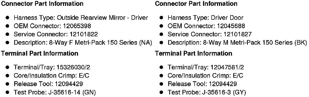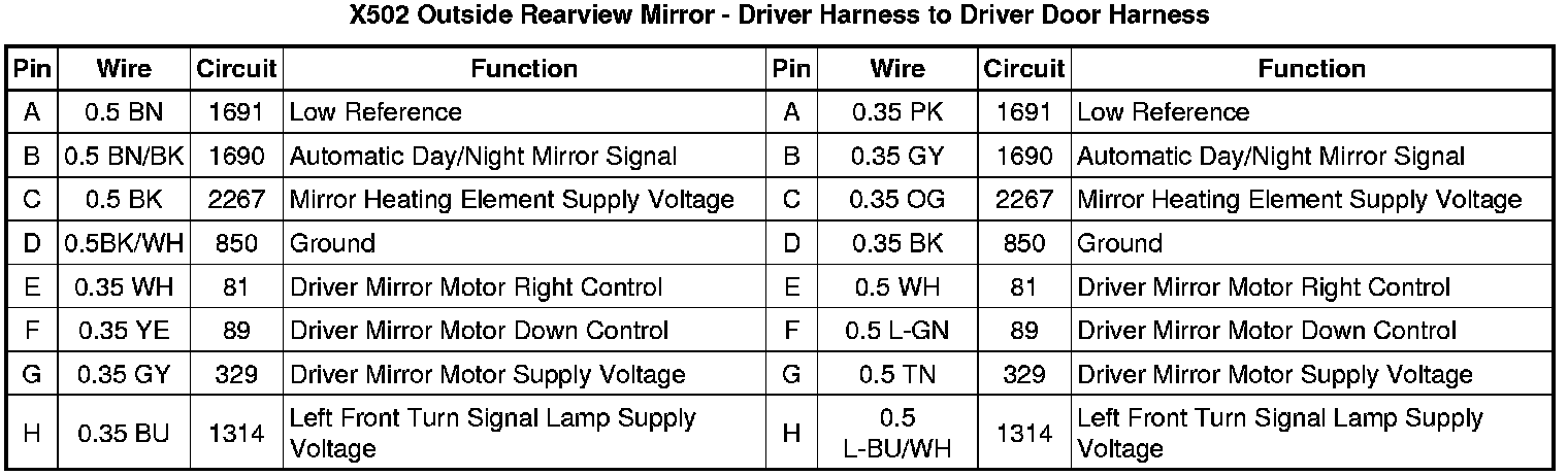 X502 Outside Rearview Mirror - Driver Harness to Driver Door Harness
