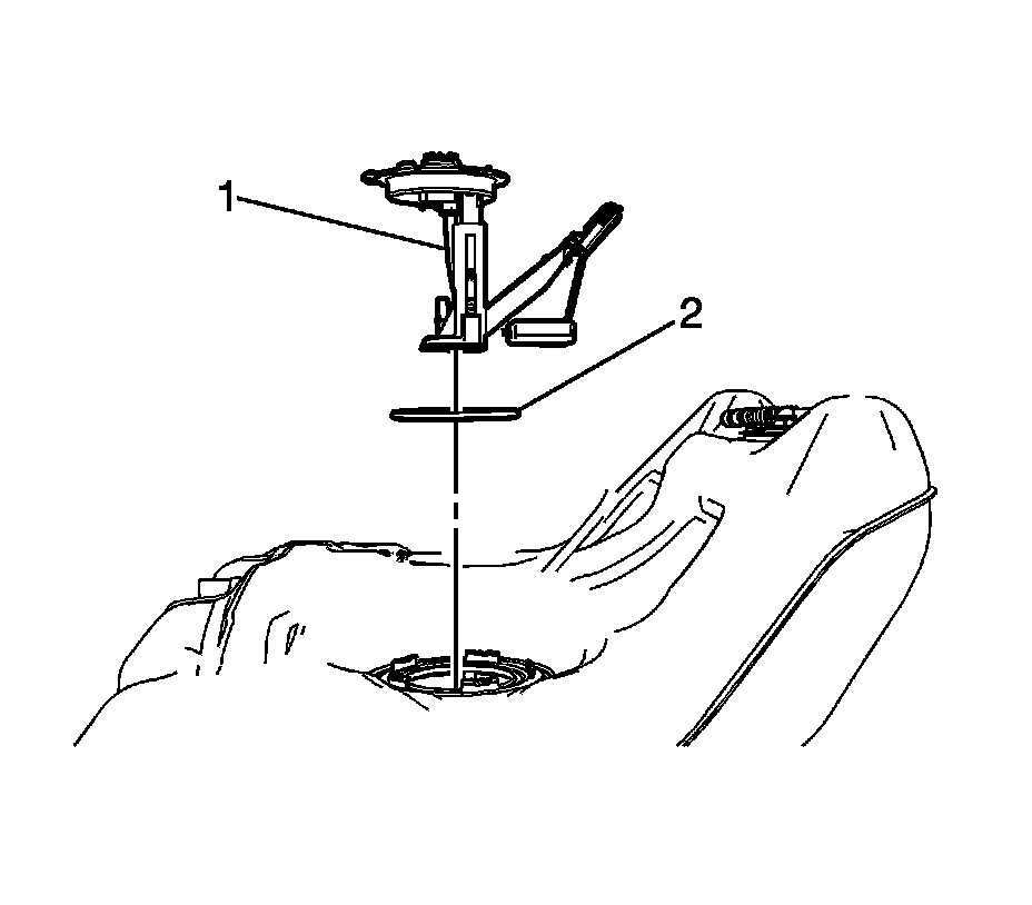 5. Remove the secondary fuel tank module (1) and the seal (2).